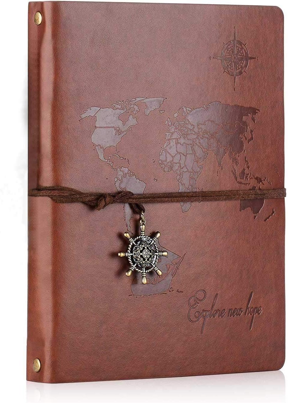 - Travel diary leather high-quality materials: the surface is made of soft PU leather, the pattern is perfectly printed, the inside is made of thick kraft paper and the ink cannot pass through. Cute modern design with refillable A5 6-ring binder loose leaf stainless steel binder.